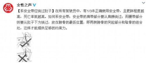 小贴士:孕妇系安全带正确步骤